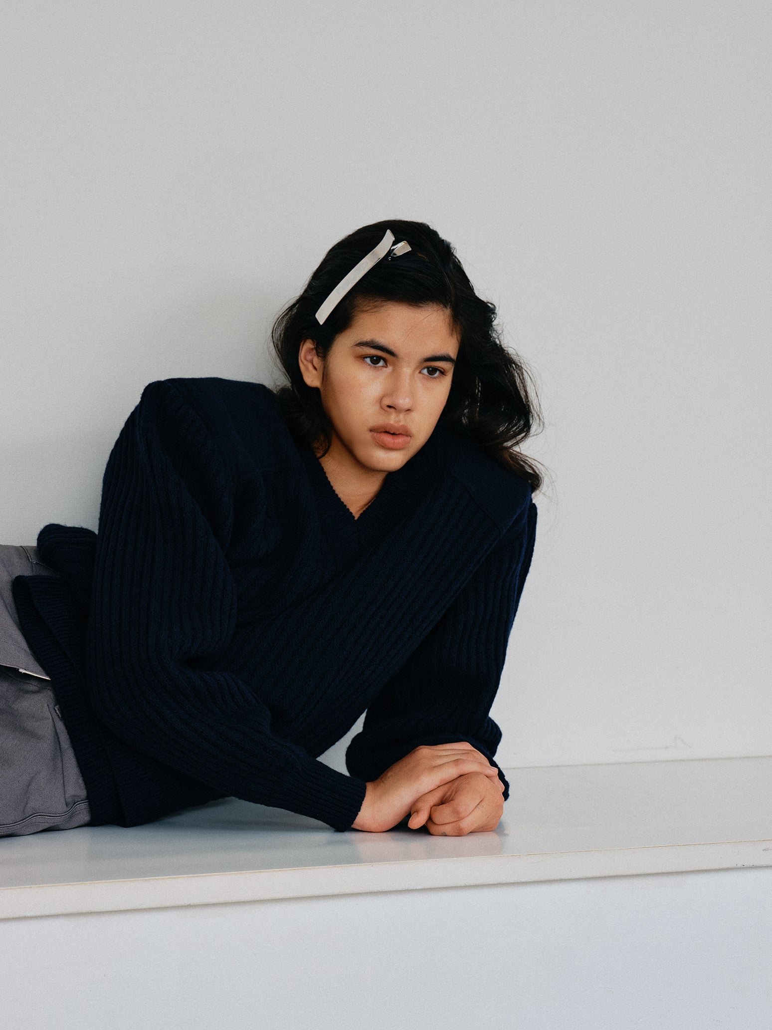 NEW LOGOの存在感のあるヘアクリップ。