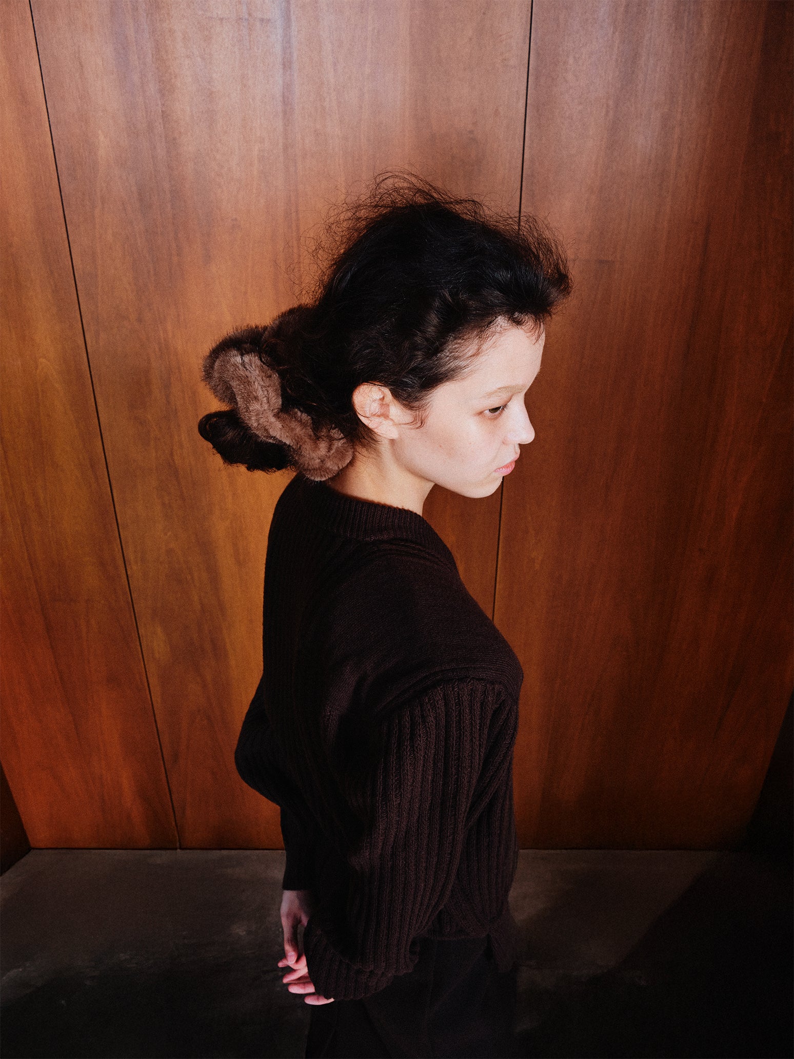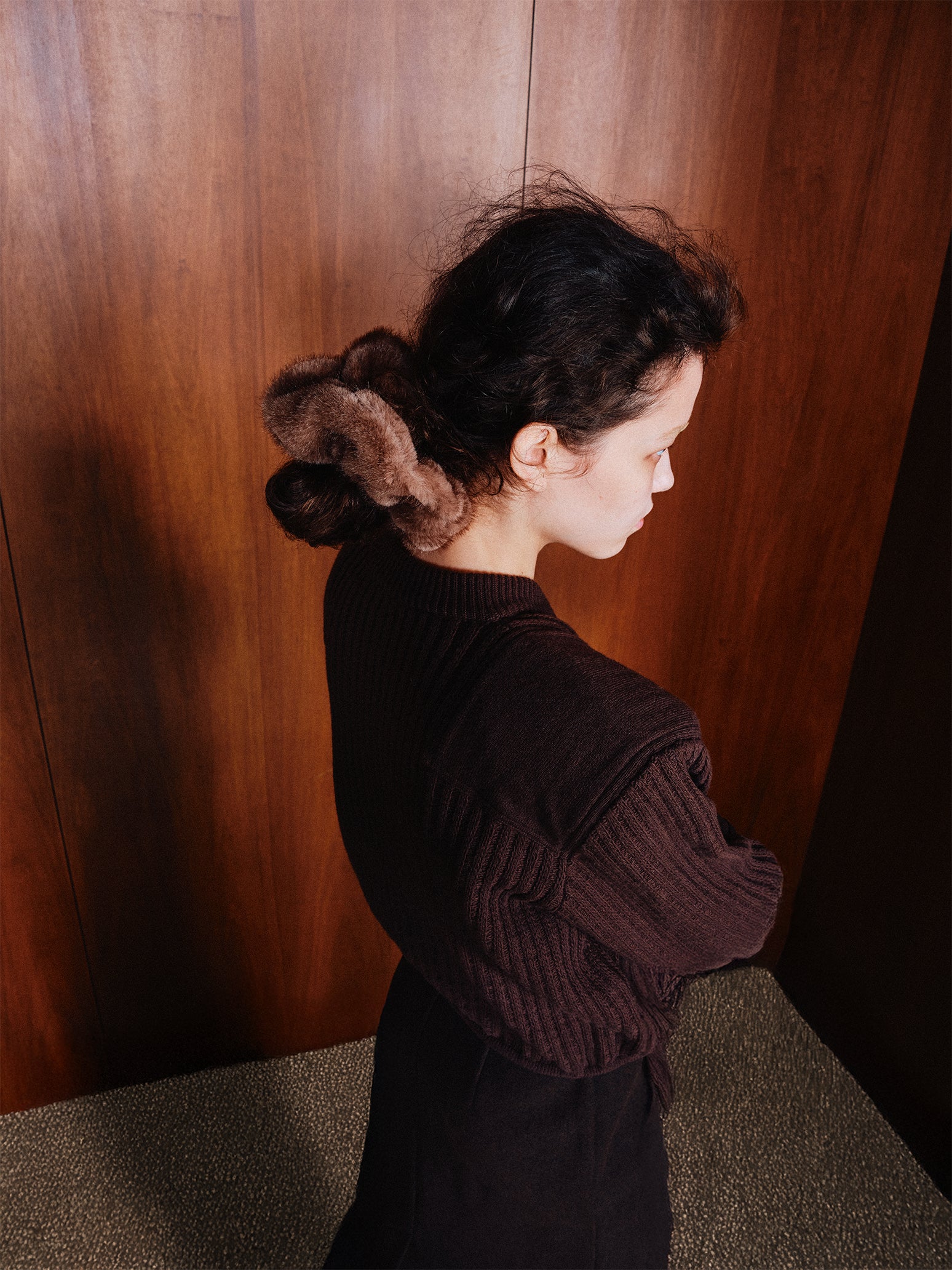 なめらかなフェイクミンク素材を使用したシュシュ。