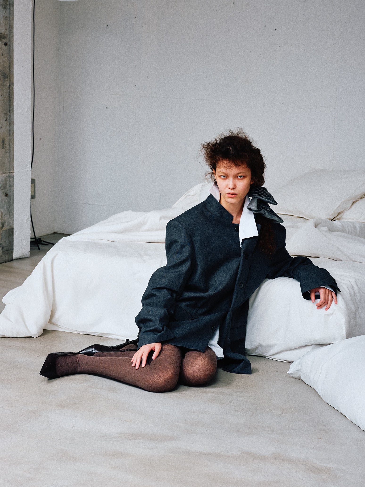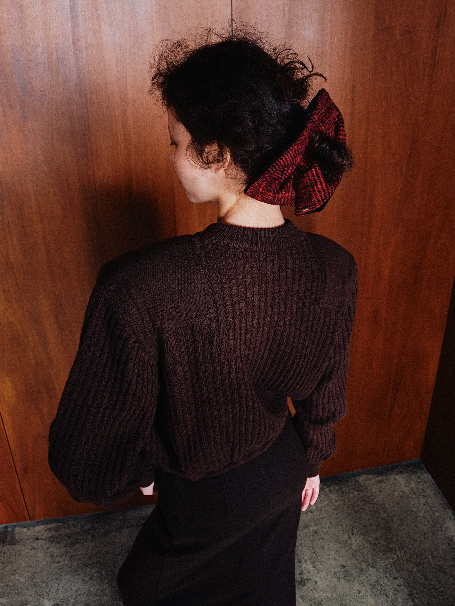 裏地にフェルトを使用し、着用時にコントラストと立体感を生み出すデザインです。