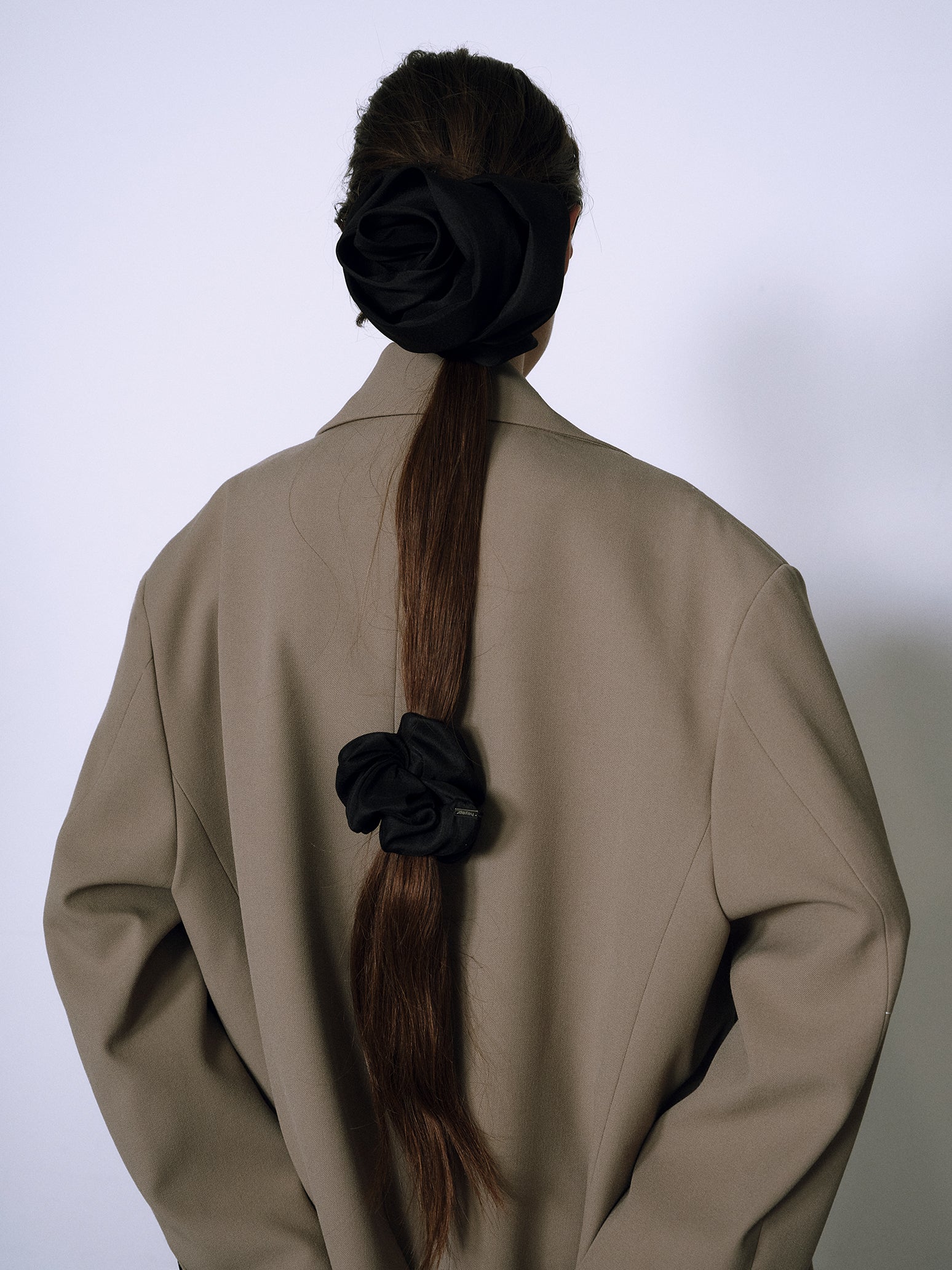 シルク素材のベーシックシュシュは柔らかな光沢、シンプルながらも立体感のあるボリュームで存在感があり、どんなスタイルにも上品さをプラスします。